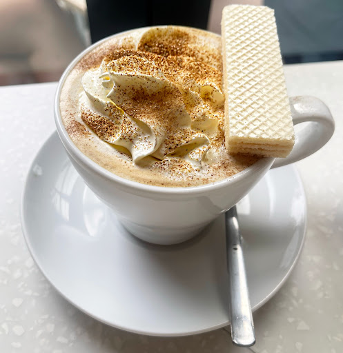 The dolce latte (I got it hot) was such a delight. Hot coffee, cold whipped cream and cinnamon⌠absolute sensation.