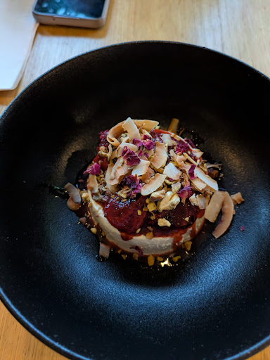 Nazzar really is a hidden gem in Perth when it comes to Middle Eastern cuisine. An unassuming look from the outside, great experience once you're in. We honestly didn't expect much to begin with. For 2 people for dinner, we ordered sticky lamb ribs, grilled chicken skewers, charred cabbage & finished with a coconut malabi, plus drinks, and we were full before dessert arrived. Sticky lamb ribs with date molasses $26: Solid 8.5/10. Decent portion, not as fatty as many other places, the skin was fantastic, the meat was so tender but you can still enjoy chewing it. With this price, there wasn't any complaint at all. Zaffarani chicken skewers $30: Big skewers, meat wasn't dry, tasted great. 8/10. It is pricier than the normal chicken skewers. Charred cabbage & herb salad: 9 out of 10. The only improvement here could be the parsley to be chopped a bit smaller, that's it. I love it. It wasn't your regular oily cabbage. Coconut malabi, sumac strawberries, rose & pistachio crumble $16: 9.5 out of 10. Creamier but thicker than a panna cotta. It wasn't too sweet, just enough to finish the night. The strawberry compote and the crumble gave a nice texture, so overall, it deserves a 9.5. Service: 10/10. The waitress was really nice and attentive.