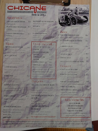 Read moreRestuarant Chicane at Mount Panorama - Overpriced with less than palatable meals. We ordered the following at 735pm: Entree: Octopus $30, small serving and bland flavour Mains: half rack of lamb $85 and T-bone steak $55 both to be cooked as medium rare. The half rack of lamb was served as cutlets due to the cooking time required and the restuarant closing at 830. Both meals were over cooked to well done. The vegetables were inedible due to overseasoning of salt. The mash had a questionable texture and flavour that resembled packet potato. We were incredibly disappointed with our meals and were unable to finish them. For the price point, we expected a fine dining experience with flavours to match. The ambience in the restuarant was awful, lots of paint work in progress and stains on the carpet. Serving staff were not attentive or present when needed. The resturant has a long way to go to satisfy the wider community during the bathurst...