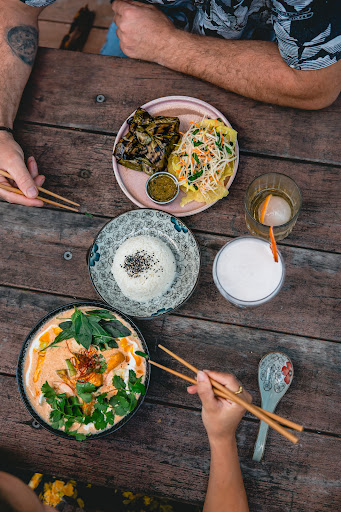 The dishes were all so big with generous amounts that I was so surprised to see. We had one waiter looking after our big group outside. The curries were filled with coconut goodness & lot’s of fresh toppings. The fried fish was very tasty eaten along with their special fish sauce & I recommend the salads too. The entrees were very generous as well. I was so happy that the service was really good especially for our big group.