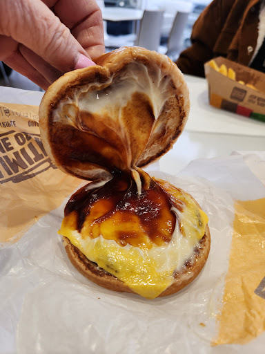 Read moreIt was a bad day in store I think. Very few people waiting. 5 tables out of 7 were empty, more critically they were all dirty. The counter where I eventually got served was also greasy and smeared. I brought to the attention of staff and they cleaned it all straight away. But my complaint is about the food. I ordered a BBQ burger with cheese. The arrival of the burger was very dissapointing. You can see in the pic it looked a mess! What you can't see is the greasy, soggy bun displayed something inedible. Over microwaved. I returned it to counter and asked for a refund. The staff were agreeable, polite and responsive. This was very welcome. What was not appreciated was the state of cleanliness of the eating areas, and the seriously mess of the burger.