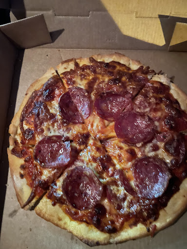 Read moreOrder a few pizzas and garlic bread online a few days ago. The online app was easy to use and great that it allowed you to add and take things off ur order. Giving me time to choose what I wanted and not rushed like when u haft to call many other companies. The pizza was perfect size per person. I loved how they have a fully cooked base and not floppy and undercooked like others in town. But sadly the pepperoni was overcooked on top and hard to chew. Only got threw half before i gave up. The garlic bread had lot of butter and full of flavour, I could have just eaten that for dinner and been happy. The customer service in store was quick but polite. Will be back again just not for a...