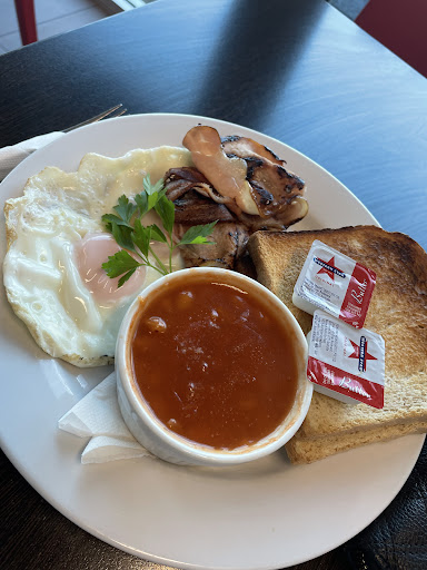 So dropped in this morning for breakfast. Been wanting to check out for a while but not usually in town early enough for breakfast. Ordered the large hot chocolate and bacon and eggs with beans. The staff were well mannered and polite. Patient with me while looking at the menu. Sat next to the window so i had a view. The food only took like 5 minutes to arrive which was great. Now im so fussy with how I like my eggs and these were absolutely perfect. Whites cook and yoke perfectly think but runny. The bacon soft in the middle but a little crispy on the edges. Beans were really hot and best part is they have salt and pepper on the table. Wasnât able to eat it all but it was a large portion for me. I could have asked for one more butter to eat all the toast but that is so minimal. The only bad part of my experience was the numb nut sitting on the couch decided to watch tv with swearing so loud the whole restaurant would be hearing it that was very annoying but not the restaurantâs fault. So recommend to all and this will become my regular breakfast spot when in town early from now on. At least their chef knows how to cook eggs. Not like other places...