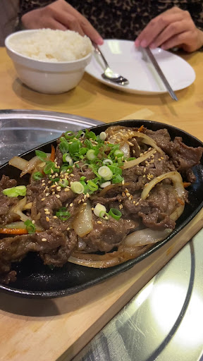 We ordered the: prawn dumplings: Dumpling pastry was a little hard (acknowledge we are talking about fried dumplings here), and the inside filling was a little dry; bulgogi sizzle plate: Very nice. A good portion of beef and well balanced with vegetables; kimchi stew
