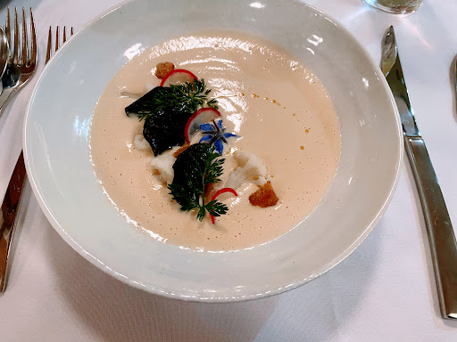 One standout dish that I have to mention is the Cauliflower veloute, truffle and crispy bread. It was an absolute delight for the taste buds - a perfect blend of textures and flavors that left me craving more.