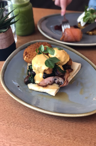 I had the Pickpocket Sriracha Benedict, I’ve never seen anything like this before down Melbourne way, awesome flavours, the sriracha infused Benedict was so damn good, the mushrooms were sautéed and seasoned perfectly, the taste was superb, eggs were cooked perfectly, only thing I could fault was the hash brown as it was more like a gratin than a hash brown, none the less it still was nice. My partner had the Corn Halloumi Fritters Thieve, which were also good, her salmon was fresh, the fritters were cooked perfectly, crisp on the outside and nice and soft on the inside, the tomato relish was super tasty, all together it paired really well.