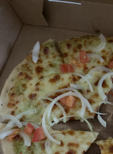 Takeaway order - super garlic pizza. Unsure if it was made fresh because I noticed several pizzas sitting on top of the oven that were being recycled. Picking off ingredients and remaking! I watched a pizza come out of the oven Then watched the staff member throw a handful of raw sliced onion and about a tablespoon of chopped tomato on top then hand to me. I was A little confused but thought okay I’ll I’ll try it. The base was thicker than it should be and doughy because it wasn’t browned. The description is mozzarella on a garlic base with chopped tomato and onion. Perhaps the description should say raw onion and raw tomato so customers can request that this be cooked through the pizza! Maybe this was a recycled pizza too and ingredients were missing so thrown on top at the end? Although the staff who took my order were friendly, it was a weird atmosphere. Disappointing and won’t be buying food...