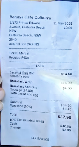 I also witnessed an altercation with a local business owner who had decided to close her doors for 10/15 mins while visting the cafe for lunch - she was told her order would take 10 mins. When arriving back she was greeted with an abrubt âits not ready yetâ by a waitress. The lady then waited a little longer. followed by a 1:1 conversation from that waitress which I was not able to make out. She then felt disrespected by the young waitress so asked for a refund due to food taking a long time and being disrespected (which is correct). The owner (purple hair) of the cafe then chimed in stateing âwell you were warrened it would take 10minsâ unwillingly pulling money from the till. After the scene the owner then said âsee you again⌠neverâ under her breathe as the customer walked out the door, she then went on to ask her staff if they knew what shop she owned.