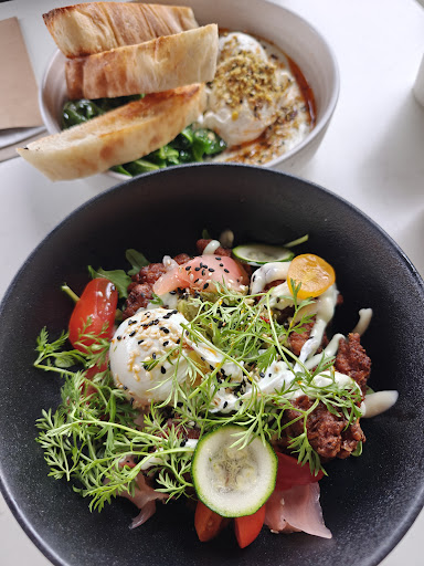 Read more(4.5 stars) You can see the Ottolenghi effect—the championing of vegetables—in the breakfast dishes at Cafe RONTO. True to his time in the UK working under the famous Yottam Ottolenghi, Hungarian-born owner and chef, Gary Ronto, draws from diverse influences to enliven dishes rooted in Middle Eastern and Mediterranean traditions. Turkish eggs ($21) with springy fingers of Turkish toast sit on garlic and dill yoghurt with a double helping of pan-fried leafy greens. The dish is gently flavoured with smoky cumin, chilli butter, dukkah and herb oil, and very easy to enjoy on a hot day.