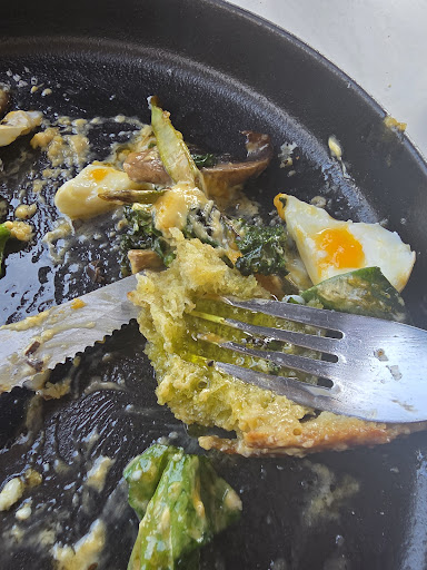 Take 3: after another 15 minutes, I got another round of the order. The quality was pretty bad. The mushrooms were not done, eggs still not poached ( soft boiled) and the bread was drenched in oil, which was pretty bad ( see attached picture)