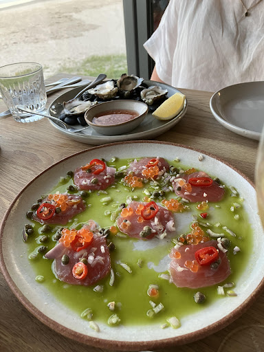 Read moreThis is a long review but a truthful one and one in which I hope the negatives will be acted upon. The restaurant is beautifully situated and has been decorated to a high standard. Our meal was to celebrate a special birthday and our small party of 4 were looking forward to having a genuine Italian restaurant experience. Cocktails were a reasonable price compared to other establishments but the wines were quite expensive. We started with olives with foccacia which had a strange texture. Our Antipasti dishes were all enjoyable, my Carpacchio in particular. One of our mains, the fish of the day was enjoyed although at $39 to have to add a side made it more expensive. Three of us had the Chilli Crab Fettuchini which had a good flavour but it was best described as stodgy with small amount of crab and bulked out with breadcrumbs. The desserts were also disappointing. The crumble was lumps of pastry, the fruit barely cooked. The tiramisu had no coffee or masala soaked sponge as it should have and it was dry under the mascarpone. The waiting staff although extremely pleasant were a little confused as to who was taking orders and they had to come back more than once to check what we had ordered. There needs to be a little more training as to what is required in serving in a what is proporting to be an upper class restaurant. Clearing tables correctly, making sure the correct cutlery is provided. On a positive note, water was replenished regularly. There was only a small choice of main dishes available apart from the Pizza. Very little pasta, where all Italian restaurants normally have a good selection. My daughter had asked if a candle and a Happy Birthday could have been put on the dessert, she was assured it would be but nothing happened and she was told that no one knew about it This is not a big deal but disappointing to say the least. We will probably not return...
