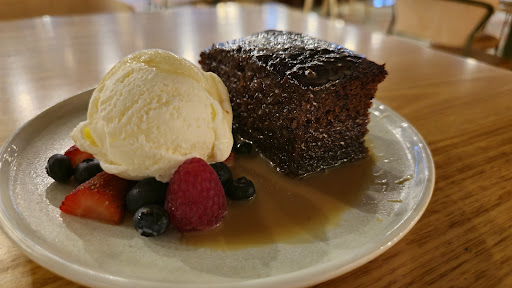 The fish of the day was flathead, so we both got the fish and chips, probably one of the fluffiest fish batters I have ever had, I would return for the fish and chips! The sticky date pudding was also very homely and the fresh berries were a nice touch, also not overly sweet.