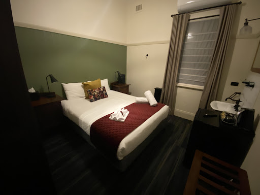 This hotel maybe in a very difficult location but it punches above its weight! The booking process was seamless. Confirmation from the host came almost immediately via phone call and she (Samantha) arranged for late night check in. Check in normally ends at 2200hrs but I was arriving after that (driving from Melbourne). It was a welcome surprise and made my heart feel at ease as I would not rush myself to get there. Thanks Samantha. That is what a good host does. Arrived at 2330hrs. Check in was easy. Parking advice given with assurance of security cameras all around the hotel including the car park. A tour of the hotel given going up to my room on 3rd floor. Access keys are digital. Bar entrance is separate from guest access which was a big plus. Guest entrance only accessible using guest access keys. That is a very good safety feature I welcomed with a happy face. The hotel is clean! The fixtures in the hotel were not only classy but were also brand new! A true test of quality were the toilets! Very very clean. Immaculately clean and had all the facilities of a 5 star hotel. Electronic sanitary bins were a plus! Australian made classic body wash, shampoo and conditioner with eccentric aromas was also a very big plus. Instructions on towels re-use were well posted on framed cards. There were cards with instructions all around the room too. The bed was new! So was the linen! A touch of ethnic fabric on the decorative pillows was on point! So was the Russel Hobbs steam iron! So was the ironing board! A large TV with a variety of channels 😀. Hooks for towels and gowns on each side of the bed. Very old classic hardwood wardrobe was a good touch to that Victorian style abode. Aircon fully functional and very effective. The carpets all around were new too. The paint on the walls was clean and noticeably recently coated. A small bar fridge with the usual tea and coffee making facilities was there too with a clean electric jug. 👌 The second floor hallway had a vending machine with a variety of snacks and drinks including bottled water. Everything about this hotel was on point! The staff were very friendly. Check out was easy too. I definitely recommend this hotel 🏨 👌. Will definitely come back here again whenever I am visiting Canberra. I felt safe and enjoyed my...