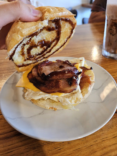We went here for lunch for a birthday. The service was amazing, with the owner and staff welcoming us warmly, and giving a humorous, personalised experience when we were looking at the menu and ordering. I had the special egg and bacon roll, which was 11 dollars, quite cheap for this quality. The bun was large, and yummy soft bread, the sauce was both tomato and bbq sauce, but was portioned perfectly as to not overpower the roll. The egg and bacon were both cooked perfectly, just to the degree that I like it, with my eggs slightly runny and bacon not too crunchy. This all, paired with the American cheese within, made for a delicious egg and bacon roll that was quite filling and pleasant. I coupled this with an Ice Chocolate, which had ice cream, cream, and ice. The drinks as delicious, with all portions being perfect, especially with the chocolate not being too overpowering as these drinks often are. My grandmother had a cheese and tomato croissant, which was toasted perfectly, and she said it was very fresh. She also had a berry smoothie, which I tried. It was, again, perfectly portioned, with the berry flavour not being too overpowering but still very fresh. The smoothie itself could've benefited from a couple of ice cubes to make it colder on this hot day, but all together it was a fresh, delicious lunch for all of us. My grandfather had a flat white, which he enjoyed with no complaints. A pleasant experience overall, and we...