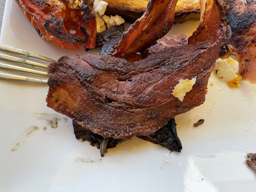 Food was cold by this time, but that aside, the bacon and toast were burnt regardless.