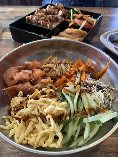 The Bento trays were also a disappointment. We ordered the fried prawn and chicken. The temperature of the "home kitchen" deep fryer must have been too low as the crumb on the prawn absorbed an incredible amount of oil and detracted from the prawn. There was a lack of seasoning and a few chunks of onion 'sauce' on top. The rice was overcooked and underseasoned. The dressing on the salad and mushroom salad tasted the same.