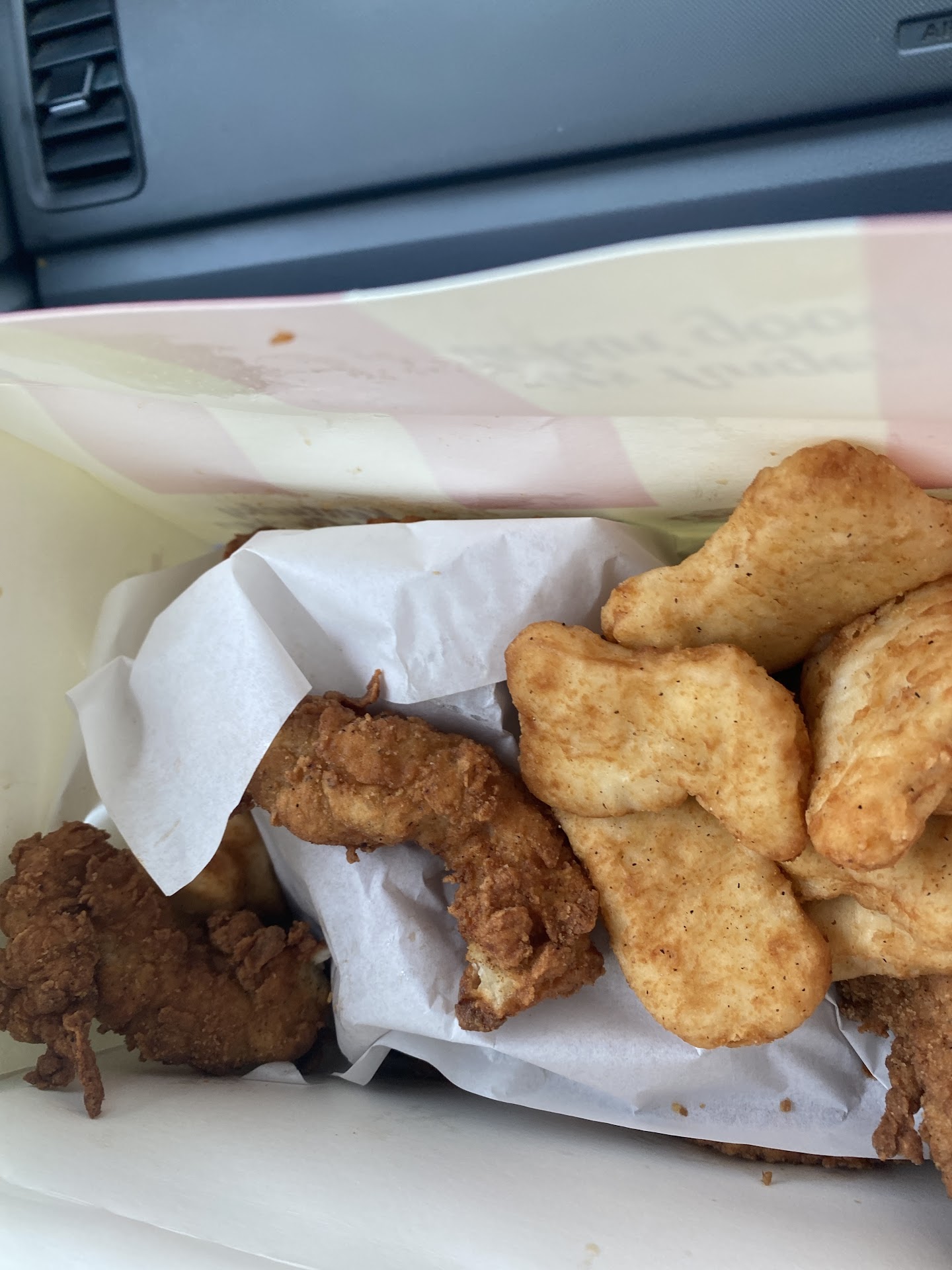 Another run in a month later. Ordered a Honey mustard wrap and double tender burger combo. To my surprise one of there female workers got cheeky and smart when I called there regular meal a medium. And because I questioned why that mattered, I got a cold chicken wrap, burger and chips.