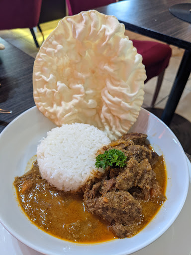 • Beef rendang ($25): delicious - perfect amount of chilli and lovely fork tender meat. Could be improved with more coconut and lemongrass in the curry / coconut rice / roti instead of pappadum. As others have said, the side salad was incredible with a great vinaigrette. Initially I felt it was slightly pricey but the price was reasonable given the portion / sides. Would be nice if the meal could be ordered at a discount without salad / rice / pappadum as it was a bit big for me with everything. • Small coffee ($4.80): it was okay; slightly bitter. • Apple strudel ($9.50): generous amount of fruit. The other sweets on offer were very tempting...
