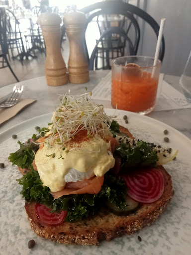 Read moreAh, a 'Benny' in Cessnock Just travellin' through..Definitely out of the box Cafe, from the greasy food expectations. Think beyond your usual muffin and hollandaise sauce. Mr.O, does it with that 'Oh' factor. Wholesome grained organic lightly toasted sourdough, gently just cooked kale, dilled cucumber, not gerkin, smoked salmon, red onions, that your breath won't detect, dressed beautifully with poached eggs that tapped dribble over your wholesome brunch, with homemade pesto to add fervour to your already hollandaise. Oh please. Yum. And set, with that essential but never given, serated knife. Pristine hygiene, at table, kitchen, chef, floor, and...toilets with hands free soap and water, a roll over from covid, keeping us all safe,...