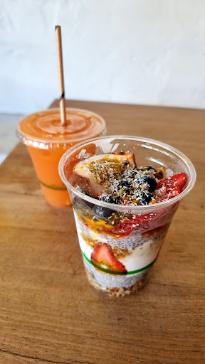 Decided to check this cafe out because I was very thirsty and saw the positive reviews of the juices on google but in hindsight was unfortunately disappointed when I received the juice I had ordered (the pink floyd) because it was so much smaller than I expected. I enjoyed the gluten free/vegan chia bowl in a cup which was a great brekky option for me as i'm dairy free and have dietary requirements, and the pink floyd juice tasted great however charging $10 for such a tiny serving in a plastic cup (about 250-300ml max) including ice cubes which watered it down is a downright rip off. I showed the juice to my friend who is raw vegan and drinks fresh raw organic fruit juices every day and he agreed i deffinitely got ripped off. You can buy juices from Top Juice that are $8 that are a way larger size that taste just as great and aren't as watered down.
