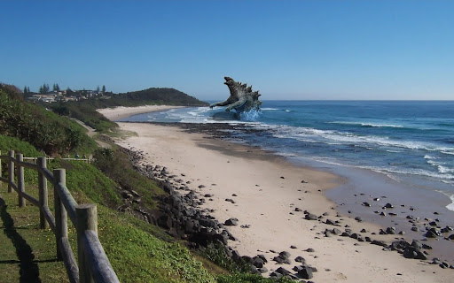 Confusion turned into panic as people rushed to one side of the restaurant, looking towards the ocean. And then, rising from the depths of the Ballina sea, emerged Godzilla! Its colossal form dwarfed buildings, and its roar sent shockwaves through the air.