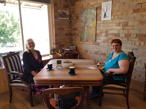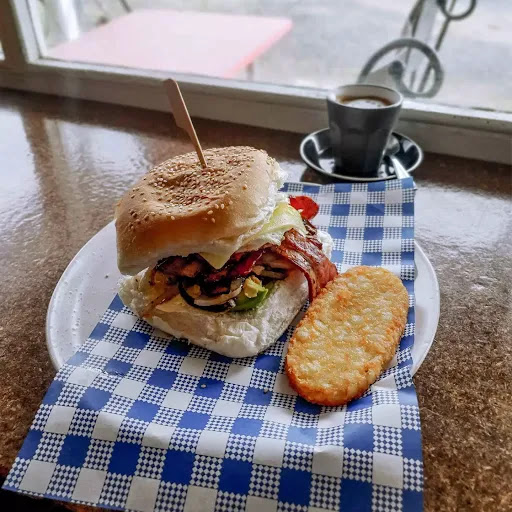 I noticed that the servings are very generous. My own meal (burger) was cooked well and full of fresh salad and on a fresh roll. The coffee was nice and hot. Just how I like it. Tables set out for conversation, and seem to encourage conversation (no wifi) which can be good if that's what you are looking for. Some small locally made items (candles, Earrings, leather good) for sale and I think I noticed some books to swap/share?? If I was ever back in the area, I'd definitely revisit and...