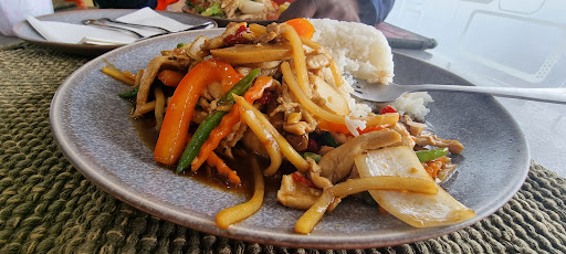We had a Chicken Penang curry and Satay chicken with rice . The Penang curry could do with more vegetables in the dish for nutritional value in the diet. There was not a large amount of food we had more at offer restaurants. They have a new menu and I just tried the Satay chicken satay and Chew chicken and Rice and they were alright! We just had dinner here and I had Cashew nuts and vegetables with tofu and I asked for extra vegetables and for the onion to be extra cooked and I sent it back three times and asked for it be caramelized and the onions 🧅 to be soft but the cook 👩🍳 said this the best he could do! I said if we were not so late ⏰ as seven pm I would have sent it back again and said I do not want it for it tasted terrible and no cashews on the plate? Not very good! I told them I could cook better which I did last nights dinner 🥘 stir fry vegetables and a lovely sauce with it ! They did allow my wife to eat her burger 🍔 and chips with me as we could do before lockdown! So that was one good thing! I had to drink a whole bottle of water 💦 to try and drown the terrible taste 👅 it was to salty yuck 🤮 I was speaking to some one else and they said it has gone down hill lately so he does not go there and there are plenty of other restaurants Jasmine Rice in Wollongoong is much better...