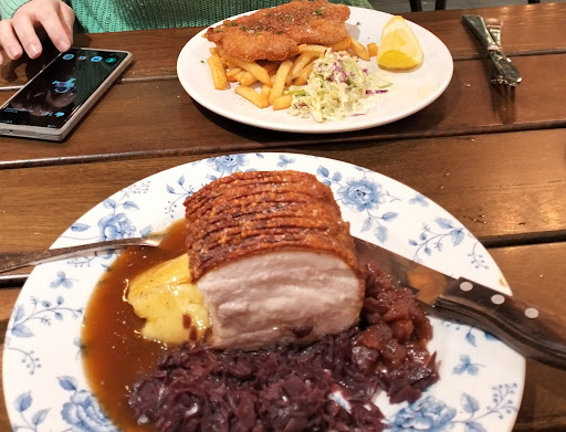 Low lights: Ordered three lemonades- all three lemonades tasted like soda water. Had to be returned. How often is the syrup checked? Customers shouldn't have to do your quality control. Booked for 3 plus a high chair. This would suggest an infant. The table we were allocated only had room for a high chair at the opening to the outside area so our infant had people bustling past and a draught blowing in on her coming in. Table layout is woefully thought out. I had difficulty accessing my bench because the table and bench to the side were jammed up to it. I felt like I was in a feedlot cattle section. At 6:30 saw a table outside and asked if we could move. Yep no problems we were told. After packing up gear, kids, etc we got to the table and told there was a 7:00 booking there and we would need to leave it by then. What? Could you not have told us that before we packed up the troupe? Back inside we went. I had to ask for some colouring pencils for my young son to keep busy colouring the kids menu. A short time later these crayons were retrieved by staff for use by another group of customers. Really? You charge $32 for a schnitzel and you have only a limited set of crayons. More thought needed. If it is a "destination for ....families ...." you need to get the little things done right. Could I suggest some German/Austrian music to be played in the background for ambience in a "Bavarian" restaurant? Top 40 sort of music sort of spoils the mood.