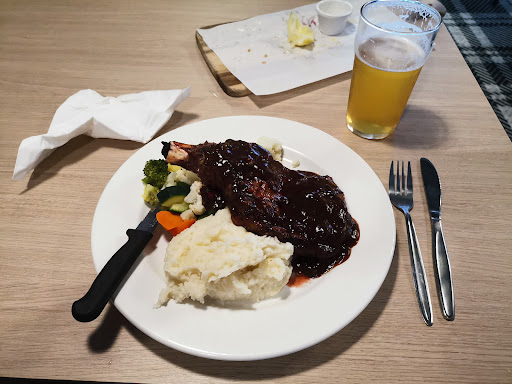 ย ย ย Read moreGroup of 7 on Tuesday "steak night". The first thing we told them is that one diner has a severe allergy to strawberries. This was emphasised when ordering at the bar and when ordering dinner. Diner #1 ordered pork belly - deep fried crackling, fat not rendered, otherwise OK. #2 ordered Angus burger - he seemed pleased #3 & #4 had bangers and mash - they were happy. "Garlic Cob Loaf" is big, but also $12. Very good though. #5, #6 & #7 all had overcooked porterhouse - on steak night. The two "rare" steaks were well done - no pink visible, no juices from the meat. It must have been nice meat before cooking because it still had flavor and wasn't tough as a boot. But the lady who ordered a "medium" steak nearly sent it back as burnt. It was overdone by almost any standard. If we weren't starving and cold, all three steaks would have gone back. Then we ordered dessert - and they garnished churros with a strawberry. Guess who they were for! Prices are average, service was reasonably fast and attentive. Good drinks list (Not outstanding, but alright). But they messed-up in the kitchen too many times. I'm confident they can do better, but very unlikely to give them...
