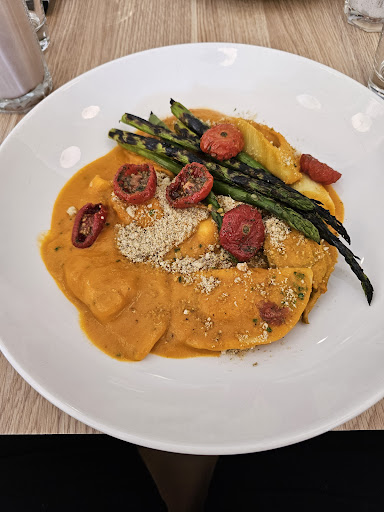 Read moreVisiting Albury we spent a beautiful warm morning exploring Norieul Park along the banks of the Murray and came across this cafe. We'd first ordered a couple of iced lattes to go along with our walk but these were disappointingly weak, essentially we had iced milk with a mere stain of coffee. However the cafe is so perfectly located and there was such a great buzz of people enjoying themselves when we came back on our return loop that we decided to give it another chance for brunch. There's a brekky menu up to 11:30am and a different lunch offering after 11:30am. Alas we were seated and ready to order at 11:15am and of course our son wanted the waffles n eggs (breakfast menu) and daughter had her sights on fish/barra and chips (lunch menu). No problems we thought, just order the waffles first wait a few minutes more then order the fish. Unfortunately this was a no go as for an unfathomable reason our waitress was insistent that breakfast and lunch menu items can't be mixed on the same table. Nothing on her she was friendly and pleasant, just the rules apparently but couldn't tell us why. Another quirk was at each item ordered she very adamantly asks who it will be for and seemed quite disconcerted that we planned to share the food and drink among us. There's a saying that brunch is for jerks and it seems that the concept is out here, so not wanting to be bigger jerks than we already were, we settled for the breakfast options of waffles, poke bowl, vegie fritters, and the daughter's temporary disappointment. Happy to report though that each of these were generous and delicious. Learning from our experience earlier, I asked for a double shot flat white which was also an improvement on the ice lattes. And the super friendly banter and hospitality by the gentleman who may have been head of staff or the floor manager, who settled our bill, left a smile on our...