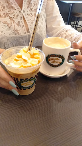 The interior of Zarraffas is very cosy and comfortable, with a painting of giraffes on one wall. It has several comfortable bench seats and an overall nice aesthetic. The service is exceptional too; I have gone there many times and they have never gotten my order wrong, even in the drive-thru! Their coffee tastes great and they even sell many different kinds of beans and syrups that they use themselves. Food and hot drinks are always hot, but not so hot they'll burn you, and the wait in the drive-thru is never too long, despite its popularity. Surprisingly, most times I have dined in it was quite quiet. Favourite seats guaranteed!