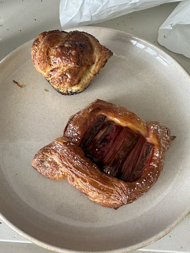 Exceptionally good pastries (Strawberry Danish and Almond Croissant [OMG!]) and the Bacon and Pickle bootstrap bread was delicious too.