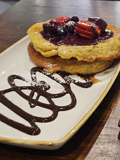 Read moreThe pancake and sourdough plate at this café is truly impressive! The pancakes were fluffy and delicate, golden and tantalizing, and every bite was a comforting treat. But what really steals the show is their sourdough bread, carefully crafted with just the right hint of sourness, crispy on the outside and light on the inside, it's hard to resist. And the hash browns, crispy on the outside, soft on the inside, seasoned just right, were delicious. The addition of the bacon was the icing on the cake, the crispy edges perfectly complementing the rest of the food on the plate. It's clear that this cafe takes great pride in their cooking, and anyone with a penchant for hearty breakfasts should stop by and...