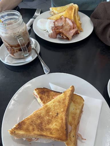 The service from the bloke at the counter was decent enough but there was a lady in the kitchen barking commands at everyone which disturbed my peace a little. It's August 2022 and they still had a covid barrier at the counter to see had to just about yet to hear each other 12 months after covid measures were removed, time to take down the Covmas decorations guys. So onto the coffee - about the level of a better than expected servo coffee but not a good coffee shop coffee I ordered bacon & scrambled eggs, it was done well and cost was ok but there was milk in my scrambled eggs which I hate so a few points lost there Parking...