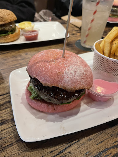 The barbie burger is what I went for, personally I wanted to see what all the fuss was about as it was all over tiktok with the constant trends and reviews about it all saying it was good, it definitely lived up to the hype with the burger itself but the chips, yes they had a tiny sprinkle of seasoning but it wasnāt enough to enjoy the chips as much as that amazing burger I just devoured.