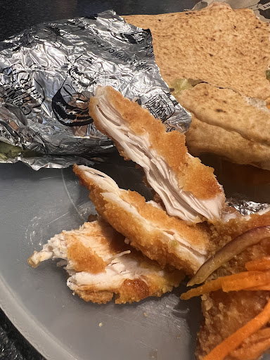 Read moreFor the last couple of months, each time I've ordered a vegan schnitzel wrap there has been problems. Even though I have clearly specified vegan , no cheese, the wrap has been been made with cheese and on 2 occasions with chicken! Chicken schnitzel is not the same as vegan schnitzel. Yesterday I took a bite of the wrap before realising it was chicken! On each occasion I have notified the staff and they have apologetically rectified the order.