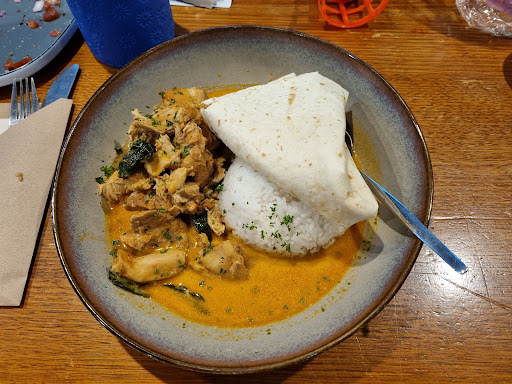 Read moreGood food. We came here as a big group, so tried a variety of dishes. My partner had the fillet steak and myself the Curry of the day which in this case was a red Thai chicken curry with rice and Flatbread. We thought both were delicious, but the steak's Diane sauce was funky. It didn't taste like Diane at all and it had chunks (from Gravy powder?) In it, we didn't eat it. The curry was very flavourful but so spicy that it made my stomach hurt. I asked the waiter if it was very spicy, she said it is a bit but she also personally can't handle spice. Therefore I thought I'd very fine as I like some spice but I was mistaken 🤣 unfortunately I couldn't finish my plate as it made my stomach hurt too much at some point but the flavour was still great, the Flatbread was delicious. We also had Bruschetta, it was good but it was a bit dry. Would recommend a bit more vinegar or Balsamic glaze on it. The rest of the table tried burgers, pasta, risotto and salads. Everyone seemed pretty happy with their choices. We didn't have to wait long either, maybe 15 to 20 mins and most of the dishes (for 9 people) were ready at around the same time. We had 2 friends that rocked up a bit later and unfortunately the wait for their food was a bit outragoes. They only had one Burger and one pasta dish and they waited nearly a full hour. That wasn't nice. Except for that the food was nice and the prices also not too bad,...