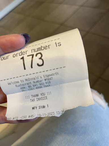 But this is terrible that for almost 12 hours the staff at mcdonald's Edgeworth left food crumbs and mess which encourages mice and cockroaches and the customers couldn't even sit down.