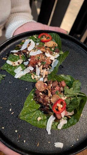 Now let me tell you about the FoodâŚit was amazing!!!. We had starters but was told we had to have our second course before our starters bc they take longer to cook. Ok. But honestly the food is brilliant. I couldnât have been happier with our decision to eat here. It was different, prices were ok but we donât care paying a bit more for good speciality style flavored food. Like I couldnât perfect this at home. And those dumplings with the sauce⌠best ever.