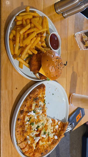 I think It’s probably a good place to take a few kids to bc kids don’t yet have mature taste buds. They wouldn’t care what’s served up. Mind you The sweets did look good. Maybe it’s a good coffee and cake place?. They have a Limited wine and beer menu. I saw some cocktails. The menus have pictures of all the food. I like that idea, but the food doesn’t exactly come out looking like the pics. And that happens. Maybe it’s just me but when I cook a new recipe I do try to get it to look similar as the recipe pic. Maybe the kitchen staff in this venue could try. Or at least try to use similar dishes on serving maybe. Garlic Bread was nice even though one end was burnt.