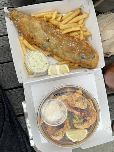 Once we got to the beach to eat, the âsaladâ that greeted us from the cold box was a few large lettuce leaves that were now a soggy and wilted mess, and to accompany them were a sad 4 calamari rings⌠absolutely not worth the price at all. And as for the âgrilledâ barramundi and chips⌠the fish was slimy and tiny, even our dog turned his nose up and wouldnât eat it.. and he loves fish.. and as for the chips.. it looked like they had grabbed one of the dine in customers leftovers and thrown them into the box with the âfishâ and said that will do.