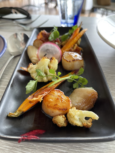 We ordered entrees and mains and shared both. For entrees we ordered oysters natural and scallops served with truffle and butter. Both were plated quite clumsily and the oysters were closer to room temperature than they were cold (they should have been served on ice, but were instead served on salt with a side of average leaves). The scallops were quite tasty and well seasoned, but were also served with what looked like Woolworths 4 leaf mix, which added absolutely nothing but soggy looking leaves to the dish.