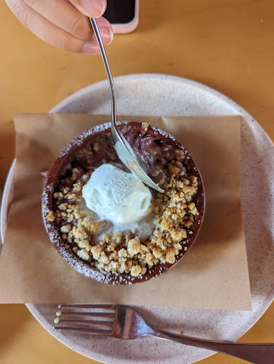 Then it was time for dessert, and oh, what a sweet finale we had! The roasted apple and pear crumble, topped with macadamia crumble and served warm with custard, was a heartwarming way to conclude the meal. Each spoonful was cozy and comforting. The crÚme brûlée, with its crispy caramel chip and quince jam, was a delightful twist on a classic, while the warm chocolate brownie drizzled with chocolate sauce and paired with vanilla bean ice cream was simply indulgent. Last but not least, the Biscoff gaytime, featuring a custard cream, dulce de leche, biscoff biscuit, and milk chocolate ganache, was a divine treat that had our taste buds dancing.