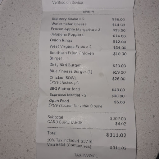 Onion rings, we’re frozen pre-crumbed rings you would expect from mid 2000’s hungry jacks, not worth the $9.50 they charge.