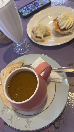Read moreFirst time visit,like going into quaint old tea shop Dolls ,coloured painted tables,essential oils,bottles of old fasioned boiled sweets,many different varieties of fragrant bath soaps,biscuits,scones,cakes cooked in the shop behind the counter scones were delicious, like you would make at home ,exciting window displays, entrance can be accessed with a pram or a walker,but not wide enough for a wheel chair,EVERY CORNER SOMETHING INTERESTING TO SEE. Helpful friendly staff that made you feel...