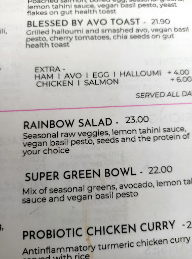 Price: The website says $12, when I got to the cafe, the board had stickers over every meal - It was now $14.5. With public holiday tax - $17.5 which is odd when that's over 20% markup.
