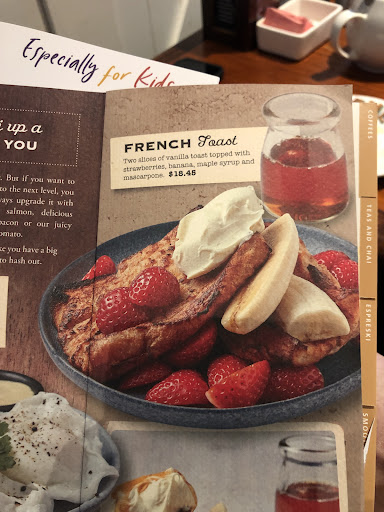 The meals were ordinary - big breakfast just barely scraped in; one French Toast was bearable; the other looked like it had Sat unwanted in the kitchen too long, sloppy, flaccid and unappealing. It was pushed aside after a few mouthfuls. Certainly didn’t look like the pic on the menu!!