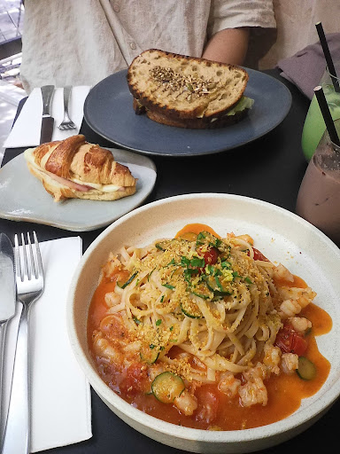 My partner and I’s go-to order is the prawn linguini, steak sandwich, and ham & cheese croissant. The food is amazing! Though, the pasta is a bit dry — I’m not sure if that’s normal for a linguini but it’s a little dry for me. The pasta sauce, however, is amazingggggg! It’s a bit spicy, but I love spicyyyyy 🔥