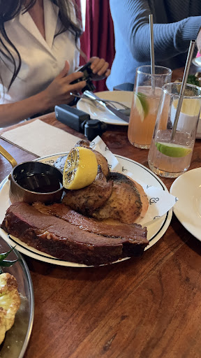 Now for the food, every element was flawless: -The slow-smoked beef brisket was so tender and flavourful that it made a beef-sceptic in our group rethink their stance. -The beef fat Yorkshire puddings were clearly homemade and delicious. -The rich Guinness-spiked gravy was so good we wished there was more! -The roasted cauliflower, broccoli, and Brussels sprouts were cooked perfectly. -The mustard mash was simple but expertly made, my Irish dad couldn’t stop eating it! -The smoked and roasted chicken was juicy and flavourful through and through. -We also tried the lemon lime bitters, refreshing, not too sweet, with a fresh lime. We ended up ordering more because everyone loved them, and the bartender clearly put care into every glass.