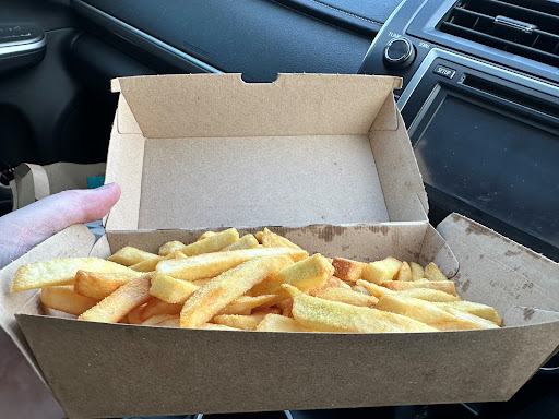 He proceeded to get my chips but only filled the medium box halfway, looked like he was thinking to add more chips or not, but decided to leave the last small couple of handfuls in the basket hanging which wouldve filled the rest of the box perfectly. The chips were of poor cheap quality and dont taste good even fresh, probably the worst chips in Darwin.